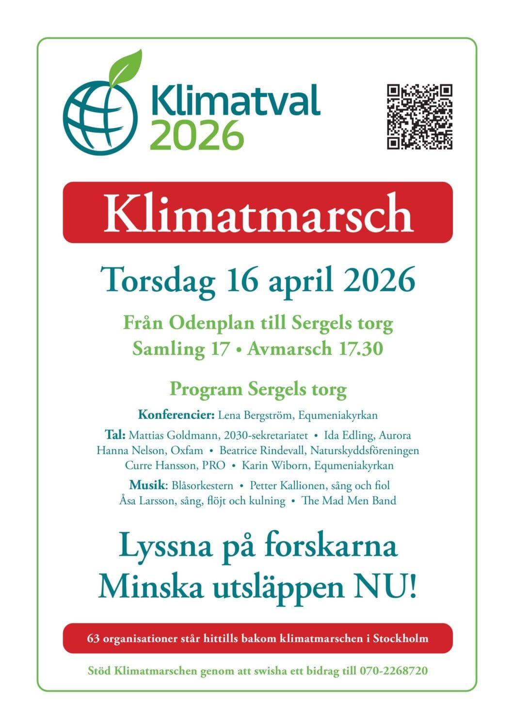Vi från Jakobsbergskyrkan som tänker delta i Klimatmarschen kan väl ta pendeltåget från Jakobsbsergs station kl. 16.28!