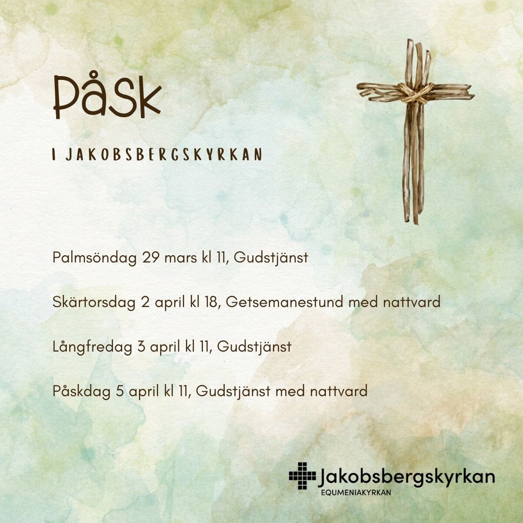 Gudstjänst Arne Josefsson predikar och Lisbeth Johansson Ishaq leder gudstjänsten. Ingen Barnens gudstjänst pga. påsklov.